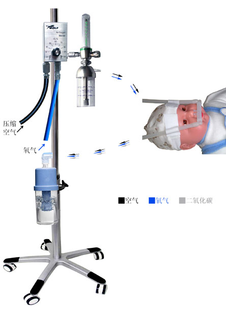 1、能夠給嬰兒提供一個(gè)安全可控的氧氣濃度(FIO2)